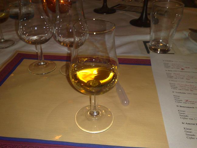 Deze whisky was eigendom van Thijs en had een waarde van 450 Euro. Hij stelde ons voor om deze fles met zijn allen te kopen en te openen en uiteraard te proeven. Anoniem werd besloten dit te doen. Dit was het sprookje van de avond. Geweldig.